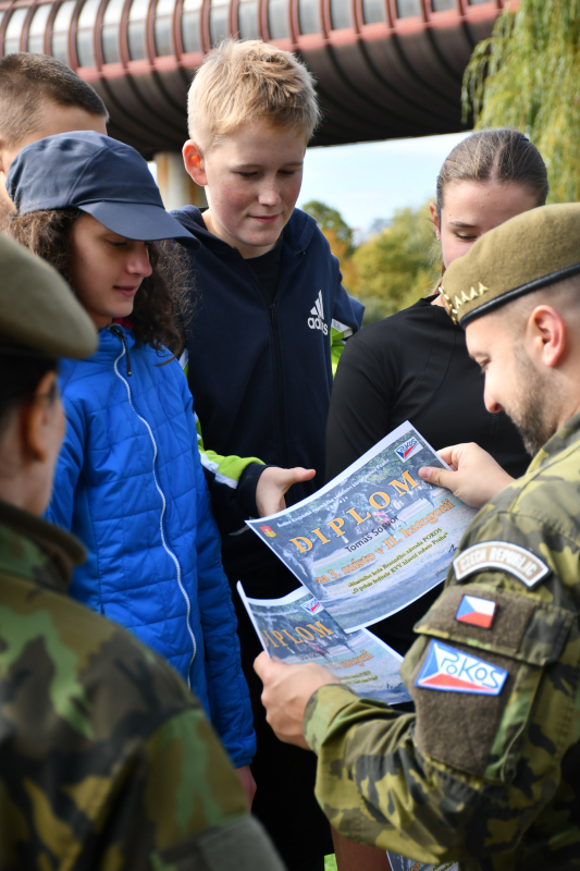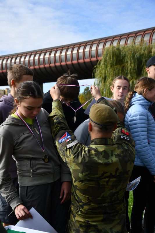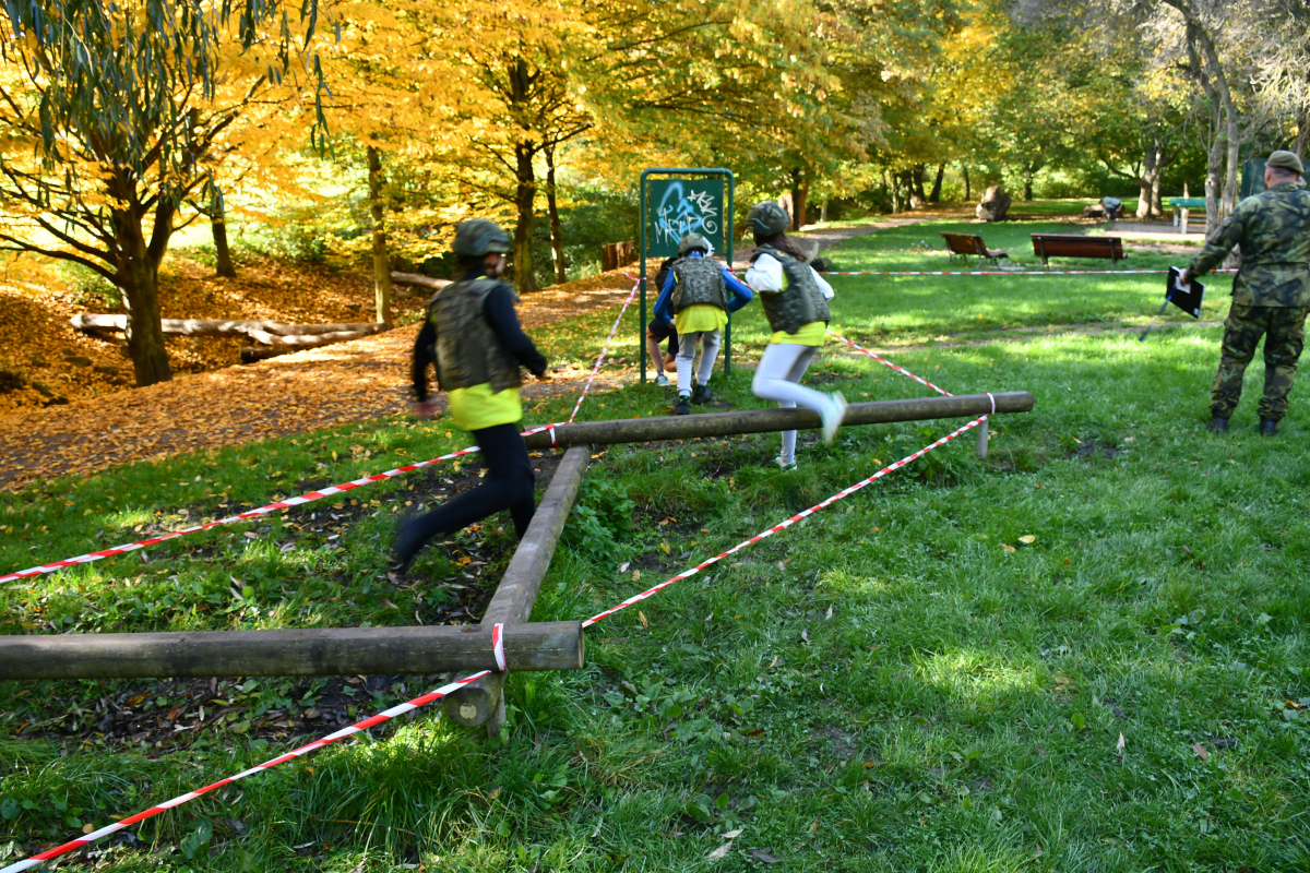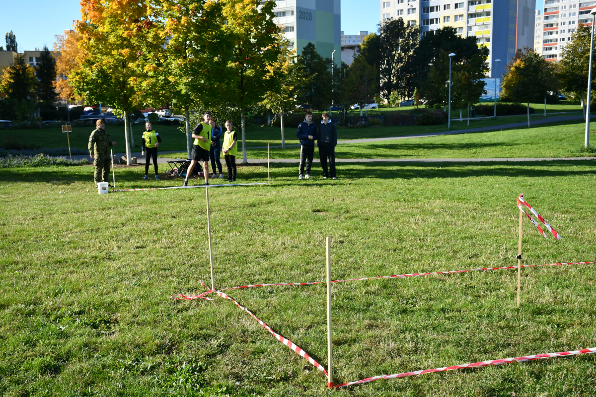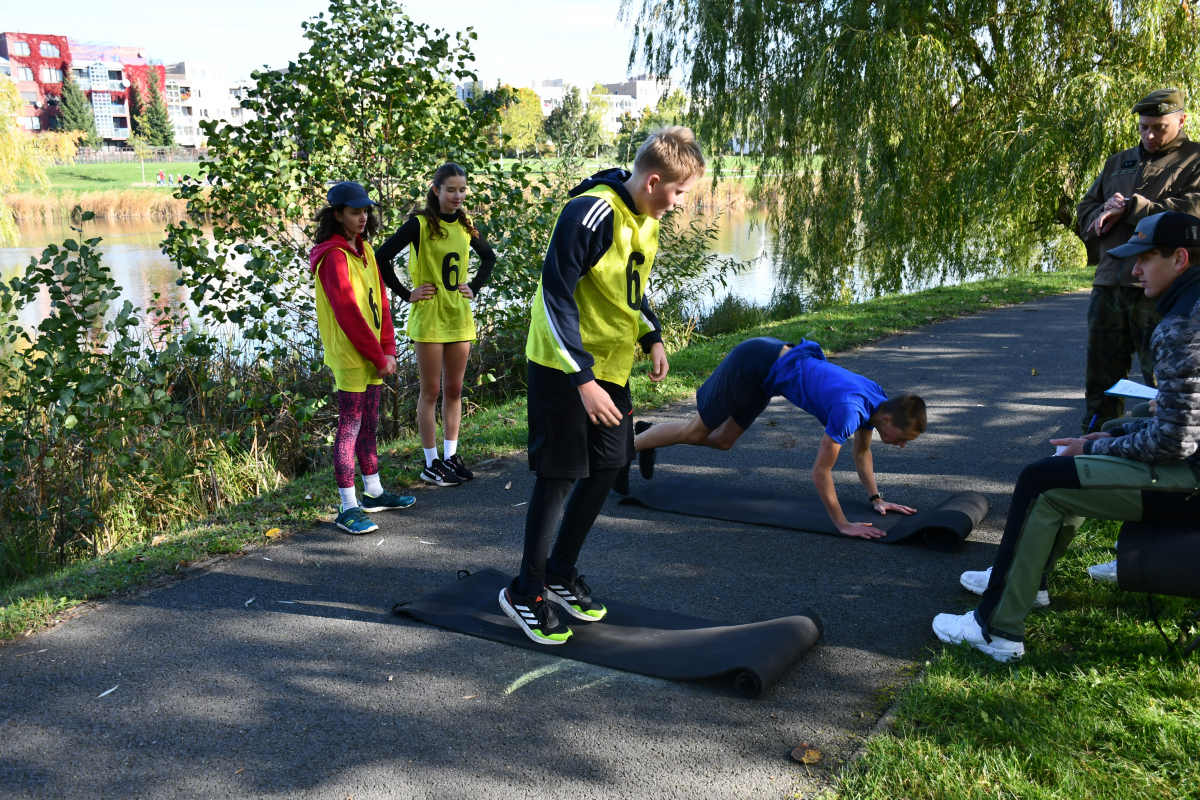 Smíšené čtyřčlenné týmy vyrazily na 3,5km trať v Centrálním parku na Stodůlkách na Praze 13 vstříc 12 disciplínám, které pro ně připravili vojáci aktivní zálohy 111. praporu územní obrany s podporou zdravotníků z 24.zDl pod vedením vojáků z KVV hl.m.Praha. Studenti tak museli zvládnout dráhu bojovníka s balistickou helmou a vestou, překonat orientančí labyrint, zdolat multifunkční sochu, hodit granát či střílet z laserové pistole.