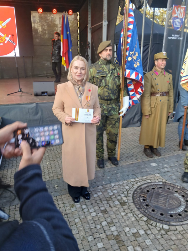 Ocenění vojáka aktivní zálohy a pamětní odznak pro paní ministryni obrany